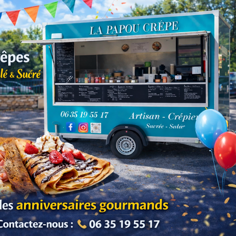 La Papou Crêpe accompagne votre réception avec galettes, crêpes et gaufres, en salé comme en sucré, pour un moment convivial et inoubliable.